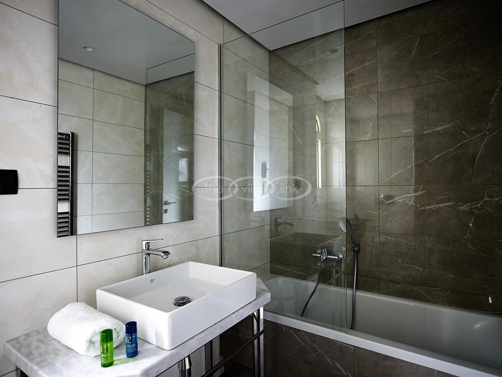 Within walking distance to the beach, the village and marina of Gouvio, this contemporary villa with swimming pool and private tennis court welcomes comfortably up to 12 guests. It is composed, on the main level, of a saloon, a dining room, an office, an independent fully equipped modern kitchen, and an independent apartment with double bedroom, bathroom and living room with kitchenette. On the upper level are set the master bedroom with bathroom and sitting area, and 2 double bedrooms, each with en-suite bathroom. On the garden level are set 2 double bedrooms, each with en-suite bathroom and a spa area with gym, massage room, sauna and hamamm. Air-conditioning throughout and TV in the bedrooms;