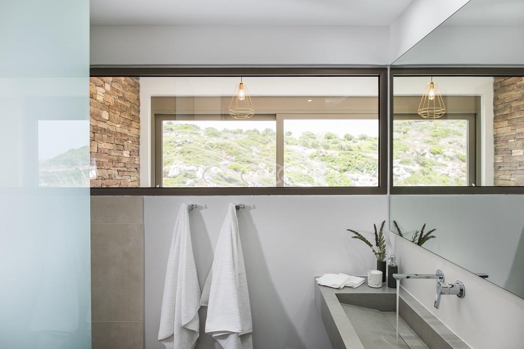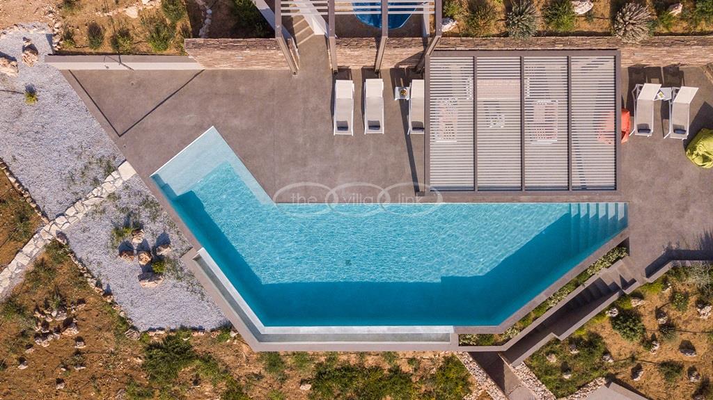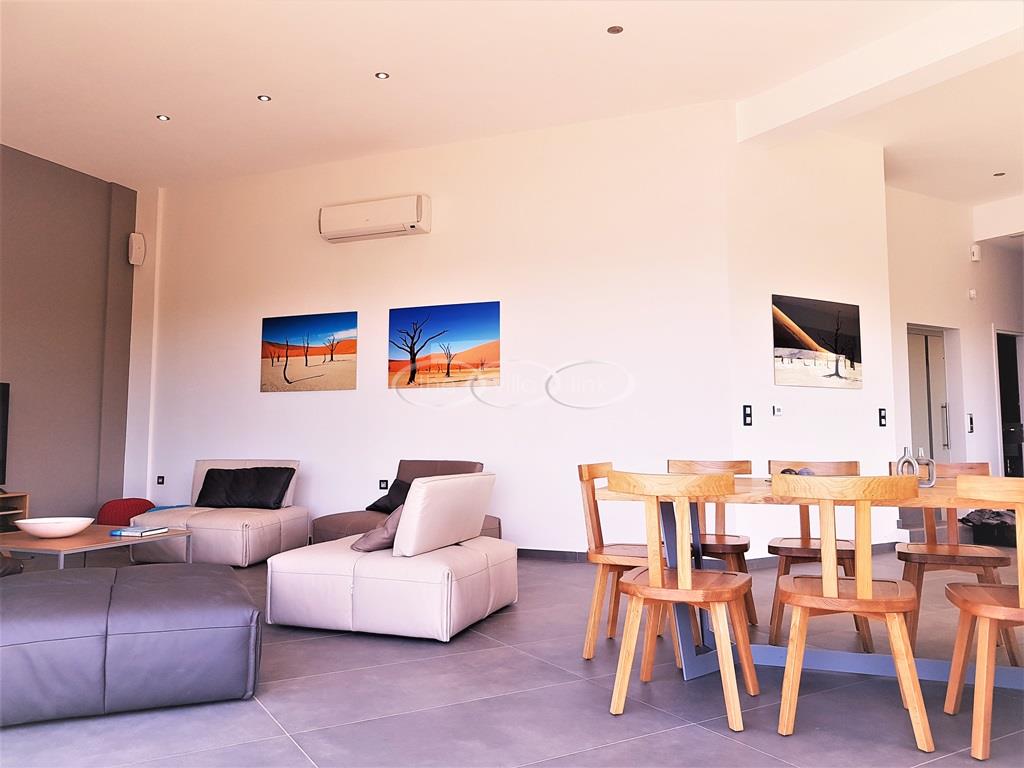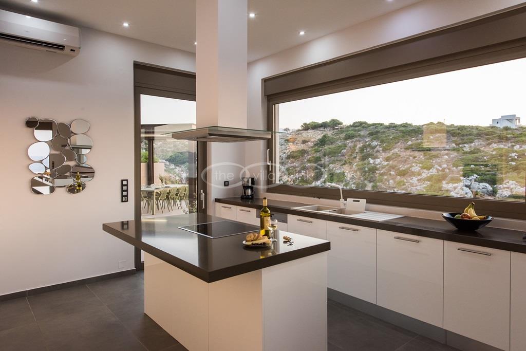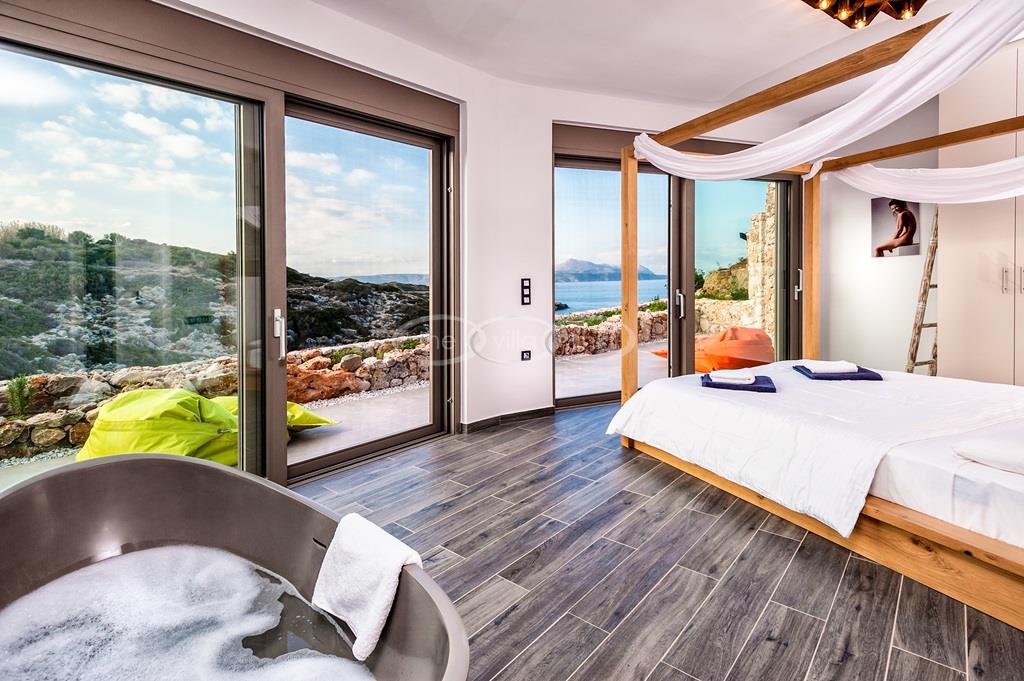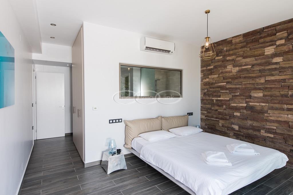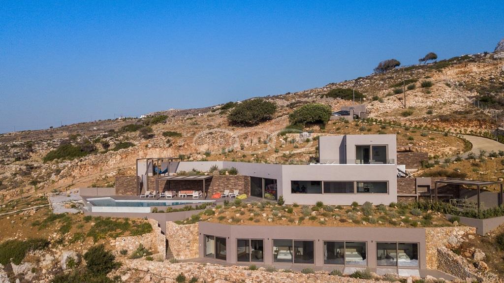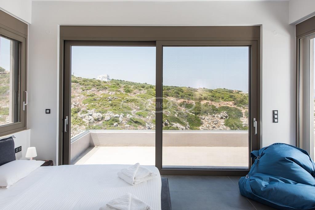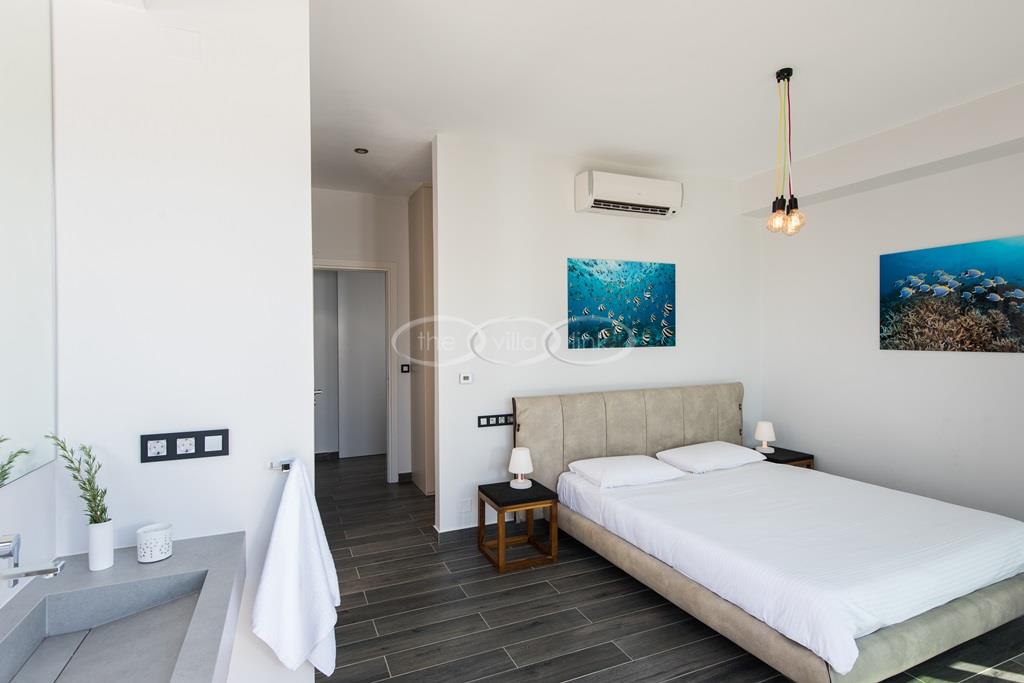 Situated on the west of Creta, 5 minutes drive to Almyrida and 45 minutes to Chania’s airport, this contemporary waterfront villa with infinity swimming pool and breathtaking panoramic sea views welcomes comfortably up to 8 guests. Overlooking a secluded creek that’s only accessible from the villa, with a minimalist style and luxury amenities, the villa on 3 levels distributed by a lift and largely opened onto furnished terraces comprise, on the main level a large living room opening onto the swimming pool with saloon with TV and dining area, a fully equipped modern kitchen and an alfresco dining area with barbecue. On the upper level is set the master bedroom with en-suite bathroom and a large private terrace. On the lower level are situated another master suite and 3 double bedrooms, each with en-suite bathroom, each with en-suite bathroom and access to a terrace, and a TV saloon. Air-conditioning throughout;