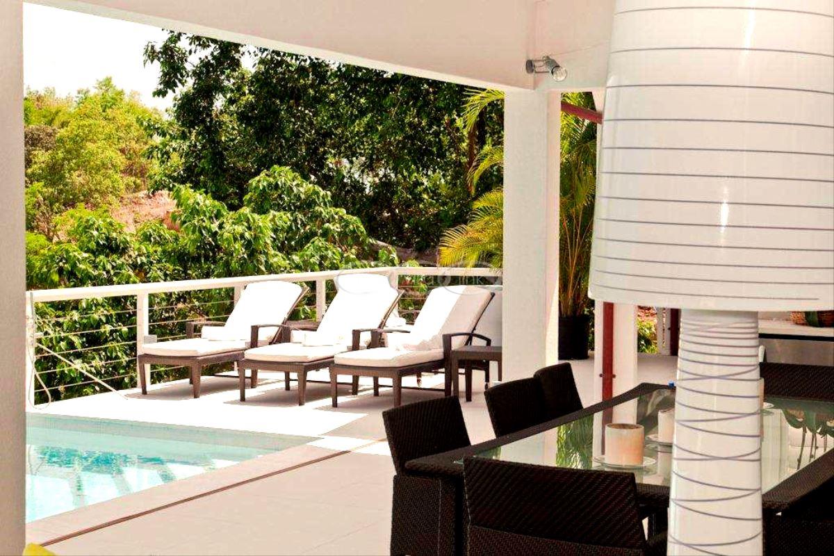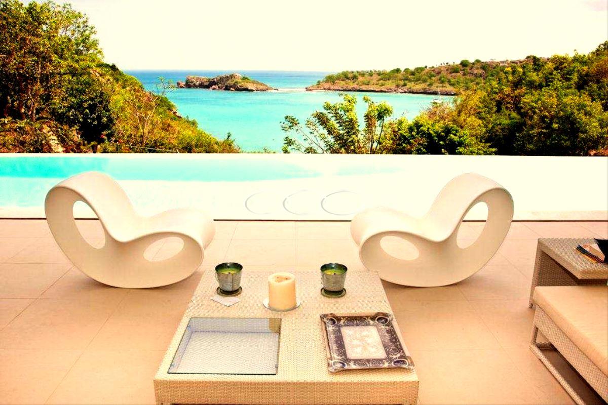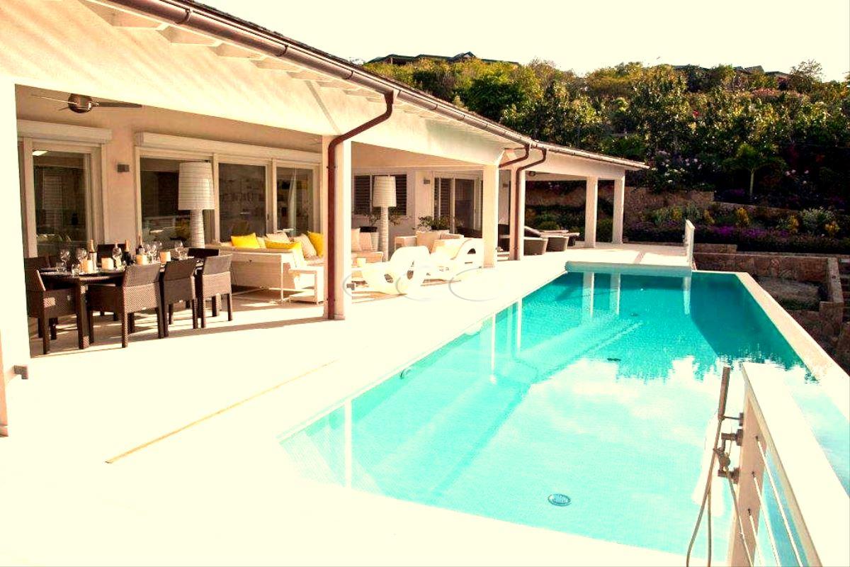 A very modern and artistically furnished villa that offers stunning views. The villa is made up of two wings that are connected by stairs and shaded verandas. You have easy access to the verandas and terraces from all the bedrooms. A superb villa where you can enjoy a very relaxing holiday