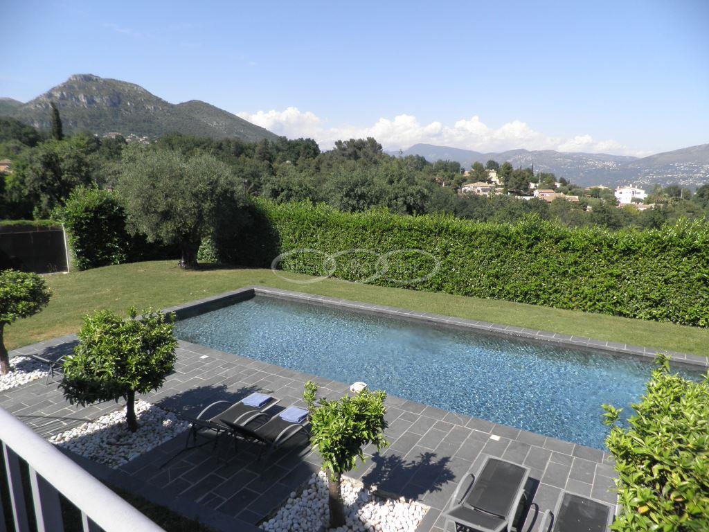 A lovely architect designed villa that has been totally refurbished inside. It's very modern and and located in a quiet residential area. This villa is very airy and offers lovely views over the valley and the mountains behind it