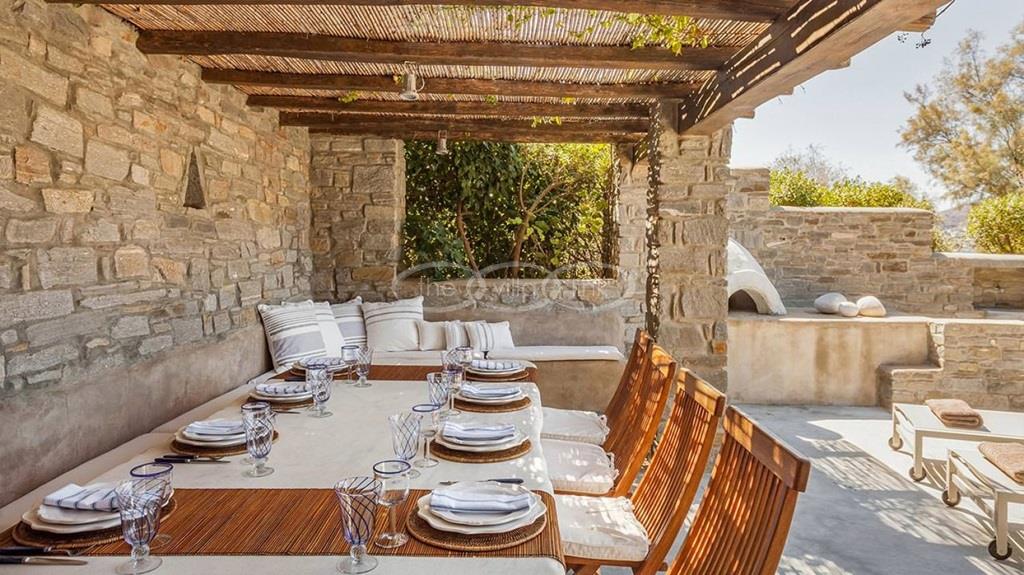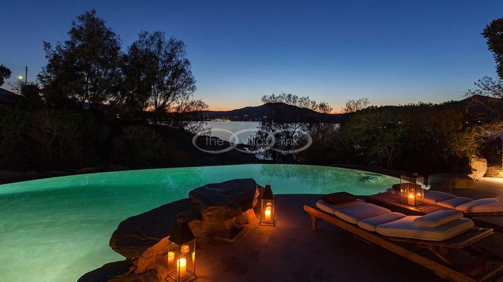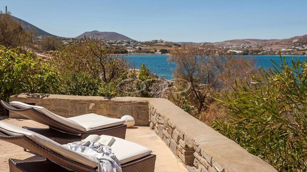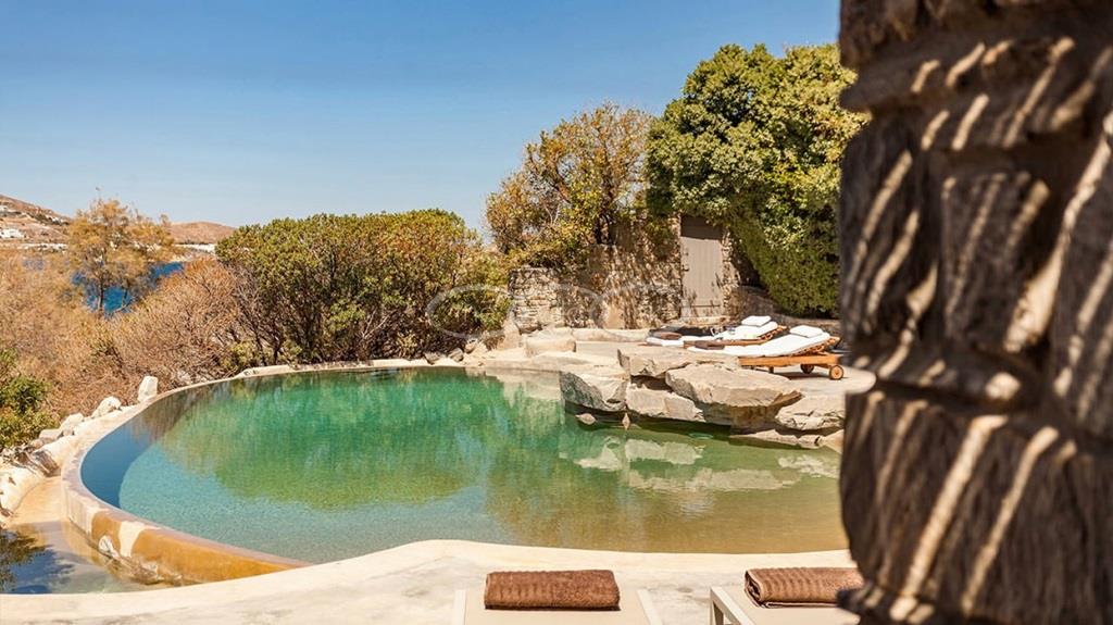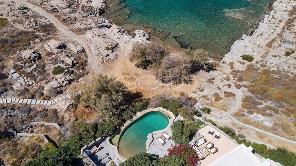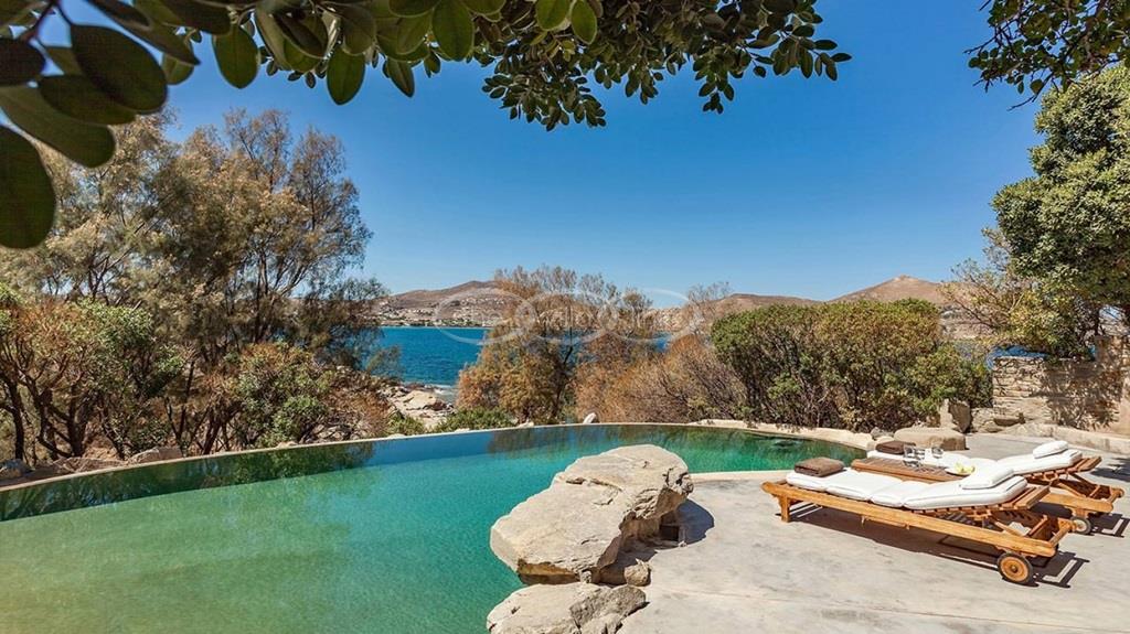 With 500m walking distance to the centre of Naoussa, this luxury waterfront villa with swimming pool welcomes comfortably up to 8 guests. It is composed, on the main level of a saloon, dining room and independent kitchen, opening onto a terrace overlooking the swimming pool and the sea, while a pool-house with al fresco dining area and barbecue are set at the pool level. The master bedroom and one double bedroom, each with en-suite bathroom are located on the main level, while the upper floor are arranged a saloon with kitchenette opening onto a terrace and 2 double bedrooms sharing a bathroom. Air-conditioning throughout; Live-in staff in independent amenities.