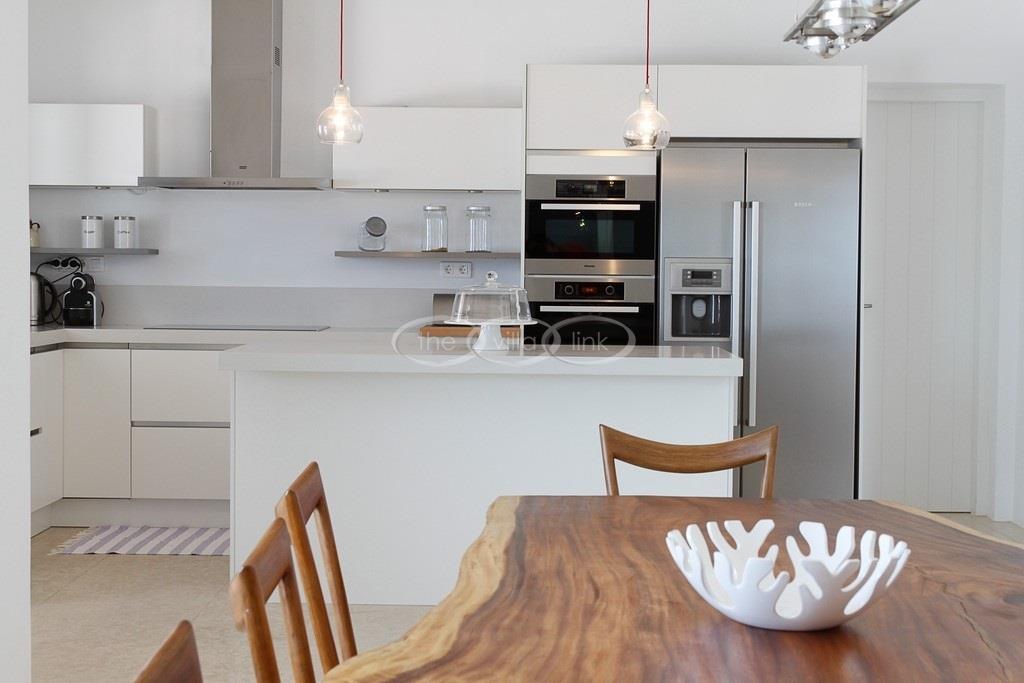 Situated on the waterfront within 150m of a sandy beach on the southern part of the island of Paros, this superb villa recently built welcomes comfortably up to 12/14 guests. Combining modernity and traditional style, the property comprise the main villa with a large living room with saloon, dining and large opened kitchen, the master suite, one double bedroom and 2 twin bedrooms, each with ensuite bathroom; 2 guests houses offer a double bedroom with bathroom for the first one and a double bedroom, a saloon with 2 sofas suitable for children and a bathroom for the other; Air-conditioning in the bedrooms; Independent staff accommodation;
