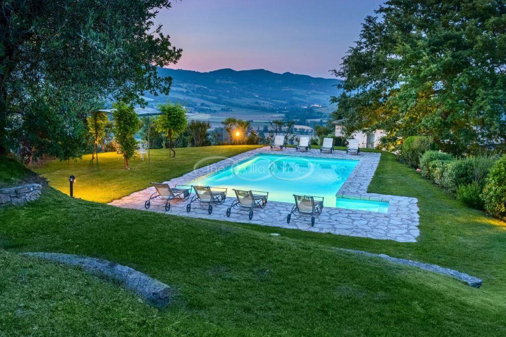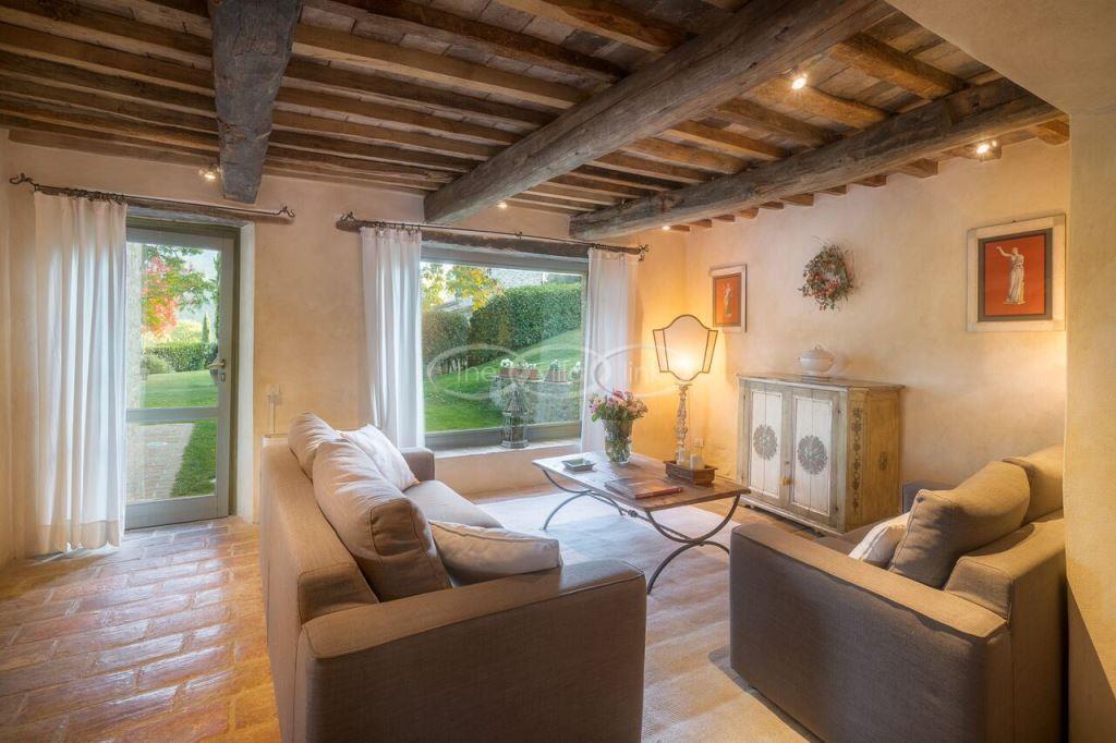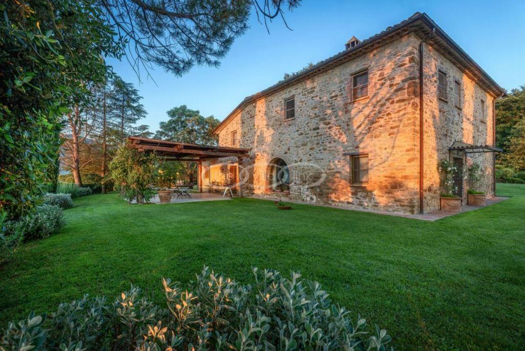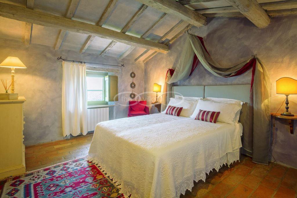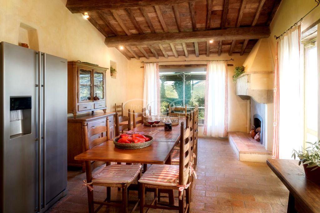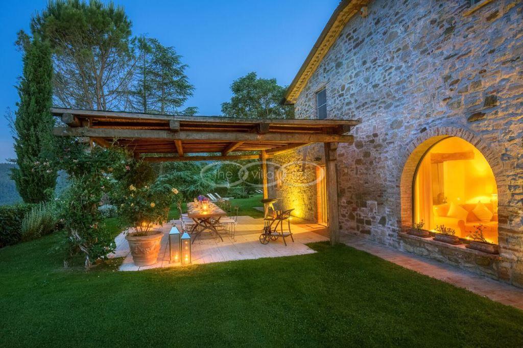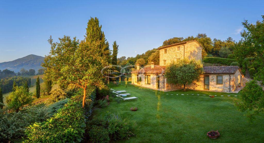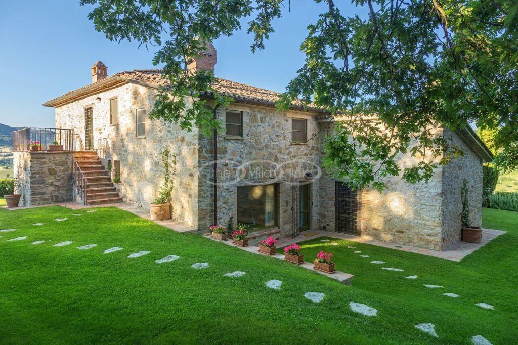 With a commanding panoramic view over the tranquil rolling countryside, this villa has a truly special quality about it. Only a stone's throw from the Tuscan border, it peers down over the famous Tuscan landscape from its perch on the top of a hill, offering luxury in an exceptional setting. It comprises a large stone farmhouse (main villa) and its annex (guest house) just 40 metres away. Each house has its own driveway and parking area.