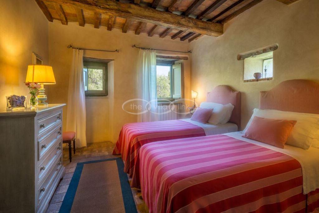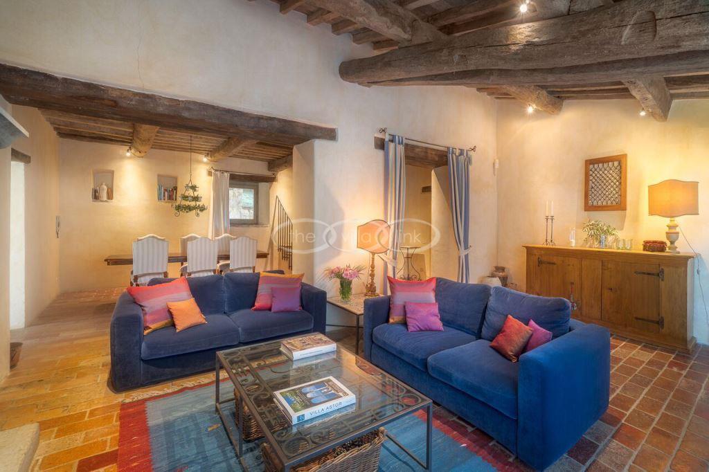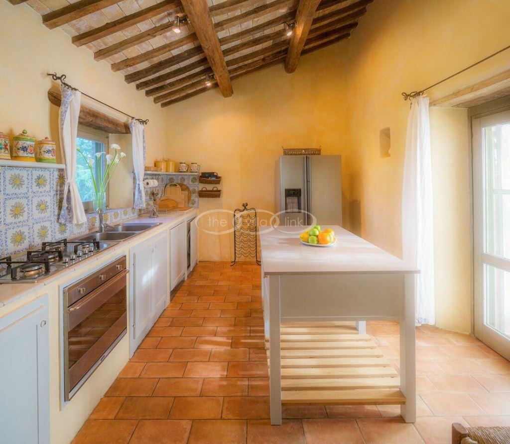The swimming pool is situated on a raised terrace next to the villa, enjoying spectacular views of the surrounding countryside. A shared tennis court located in an exclusive club nearby can be used by villa’s guests, only 3 minutes away by car, or 7 minutes on foot along a pretty path.
