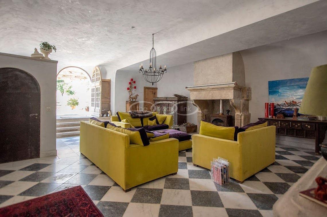 Large and spacious living room with its authentic vaulted ceilings and open fire place.