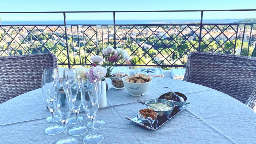 Open plan with the dining area. It is very bright and offers beautiful views over the old town of Vence as well as the Mediterranean